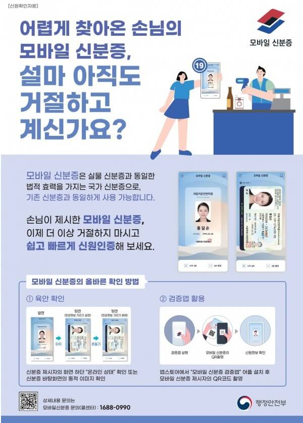 ✅ 실물 신분증을 사용할 수 있는 대부분의 장소에서 모바일 신분증 사용이 가능합니다.