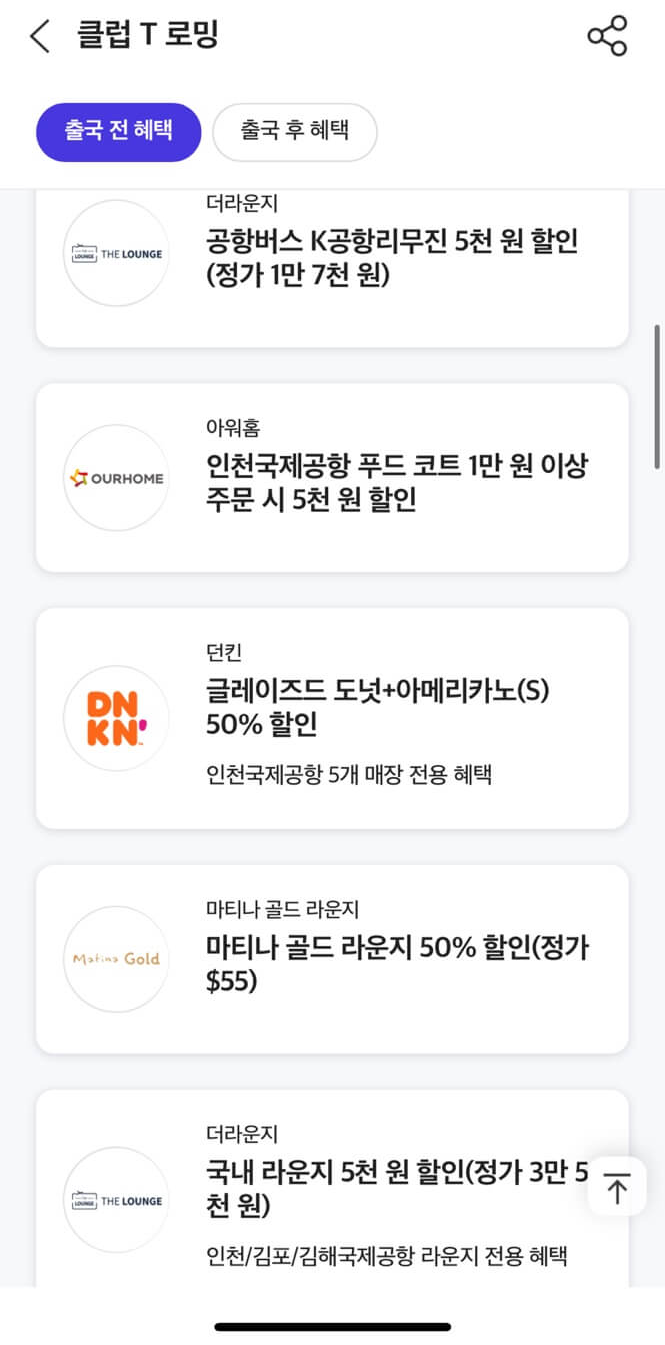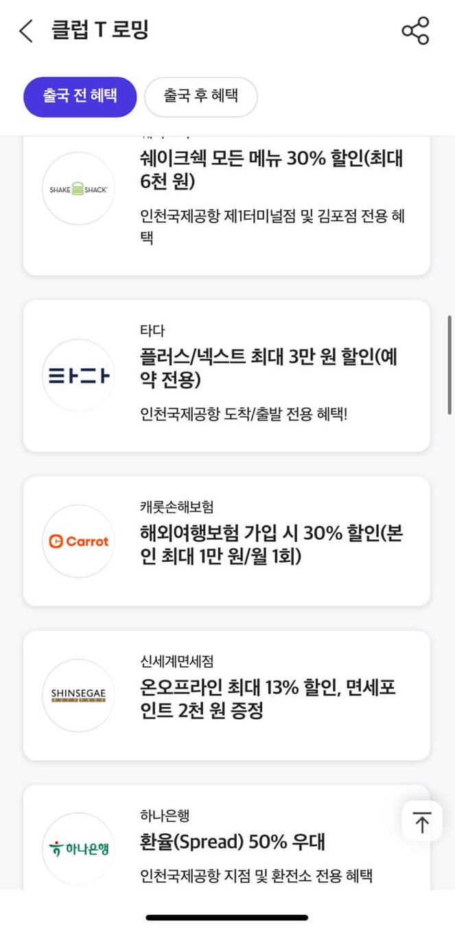 - 제휴 할인 혜택: 공항, 환전, 음식점, 카페 쿠폰 등